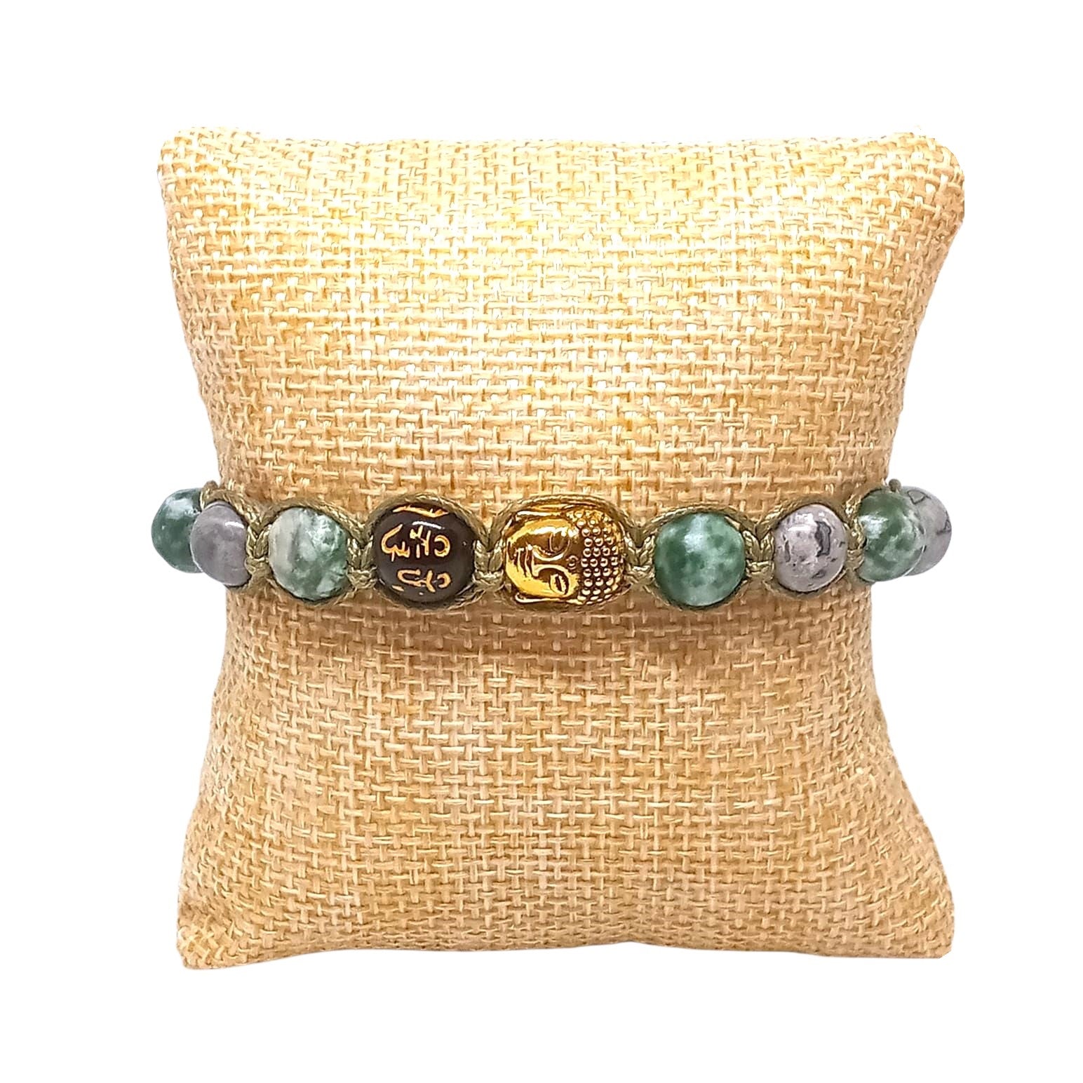 Pulsera Hombre Buda, Mantra Om Mani Padme Hum y Piedras Naturales