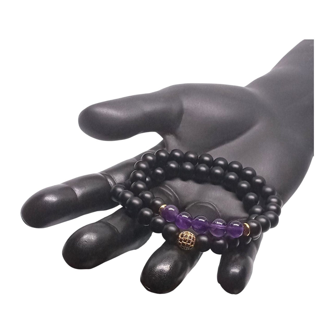 Descubre la perfecta fusión de elegancia y energía con nuestro Juego de Pulsera que combina la elegancia del cristal con el poder del Cuarzo Ónix y Amatista. Puedes usarla en conjunto o por separado.