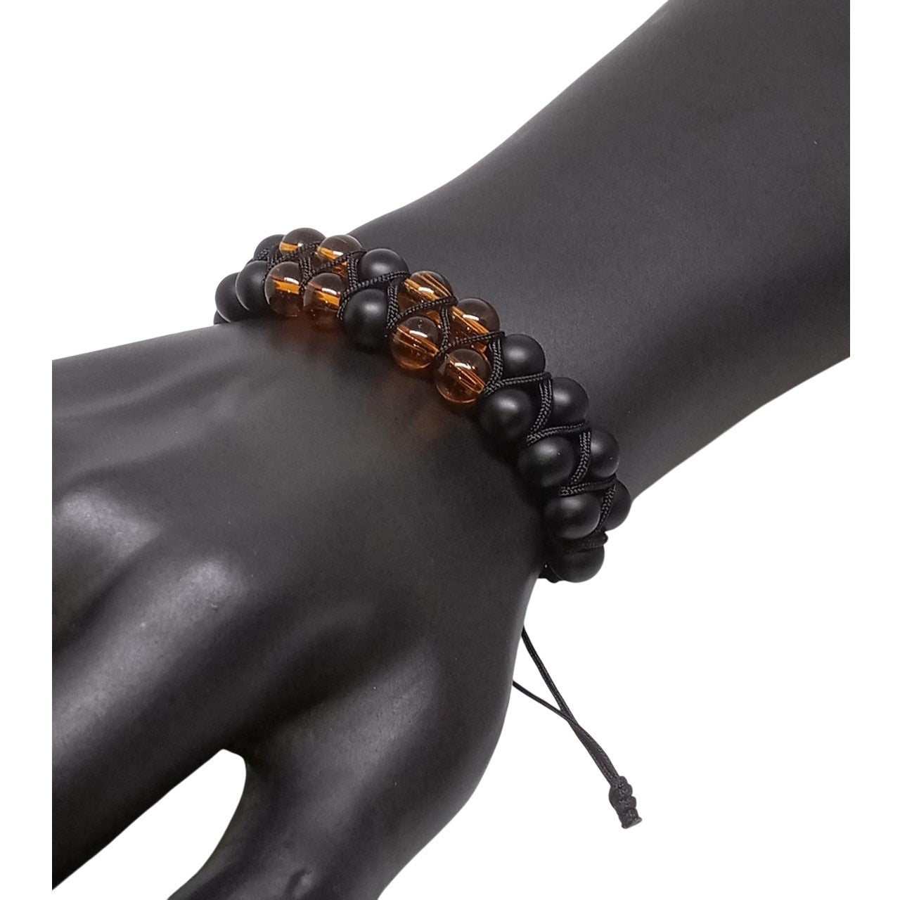 Pulsera para Hombre con Cuarzo Ónix y Ámbar