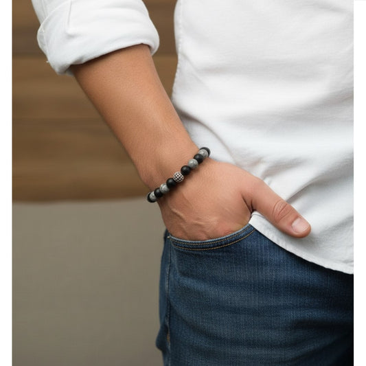 Pulsera para Hombre con dije de Cristal, Cuarzo Ónix y Picasso